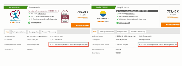 Auf den ersten Blick scheint der linke Tarif günstiger, aber…