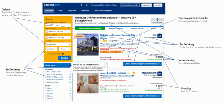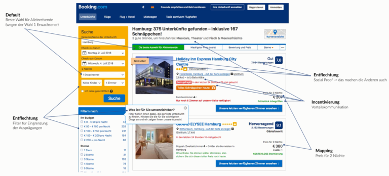 Die Kunst besteht darin, dem Nutzer bzw. der Nutzerin an kritischen Stellen (Entscheidungsknotenpunkten) im Funnel eine „unsichtbare und nicht spürbare“ Entscheidungshilfe an die Hand zu geben, um ihn bzw. sie im Entscheidungsprozess zu unterstützen, ohne ihn oder sie zu entmündigen.