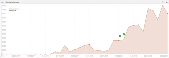 Insgesamt haben wir es also geschafft, den PageSpeed von unserem Magazin mit zwei Maßnahmen deutlich zu verbessern (auch wenn es natürlich immer noch besser geht). Mithilfe dieser Optimierung der Seitenladezeit durch HTTP/2 (A) und Lazy Loading (B) konnten wir auch unsere Sichtbarkeit verbessern. Dies zeigt der Sistrix-Sichtbarkeitsindex in der unterstehenden Abbildung.